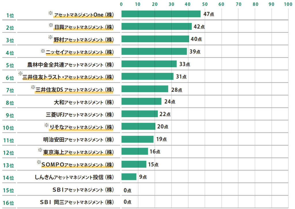 資産運用会社16社の気候変動への取り組みランキング(総合スコア、2024年度)
